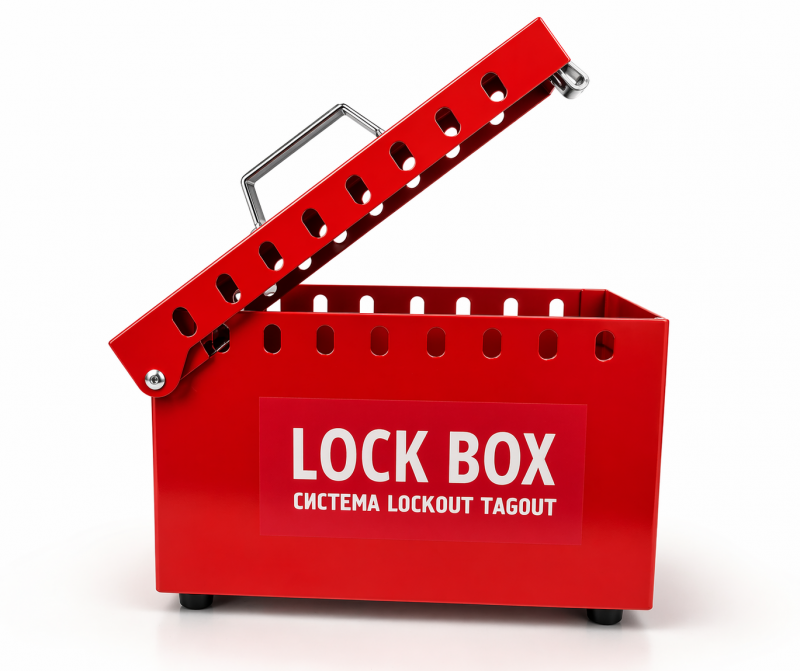 Групповой портативный лок-бокс PKB113. Позволят навешивать 16 замков безопасности, при задействовании в групповом ремонте большего количества персонала, рекомендуется использовать множительную накладку. Для удобства переноски LOCK-BOX оснащен несъемной ручкой, полиуретановыми ножками и защелкой.