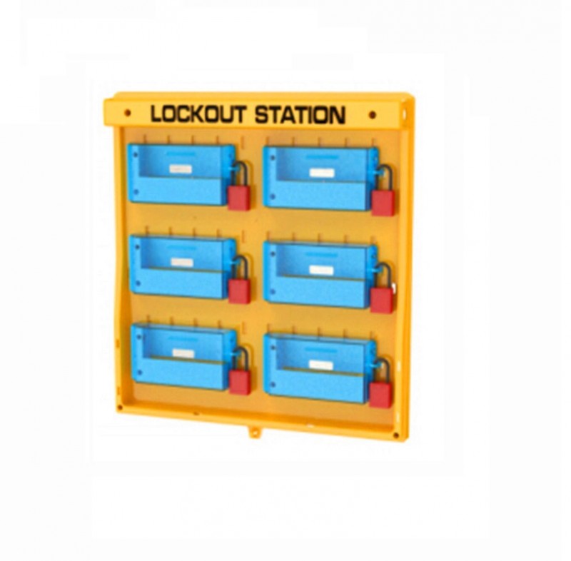 Станция закрытого типа для хранения LOTO замков с прозрачной крышкой. Вмещает 6 карманов для мобильных телефонов. Изготовлена из прочного пластика, закрывается на навесной замок. Станцию без крышки можно заказать под артикулом BD-B209W.